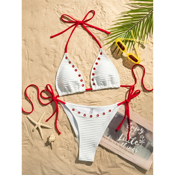 Eyelet Strappy High Cut Bikini