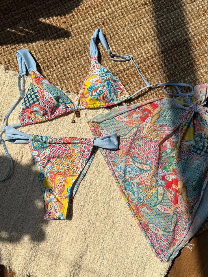 Printed Sarong High Leg Bikini
