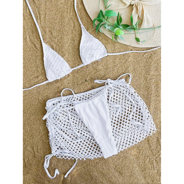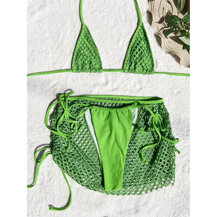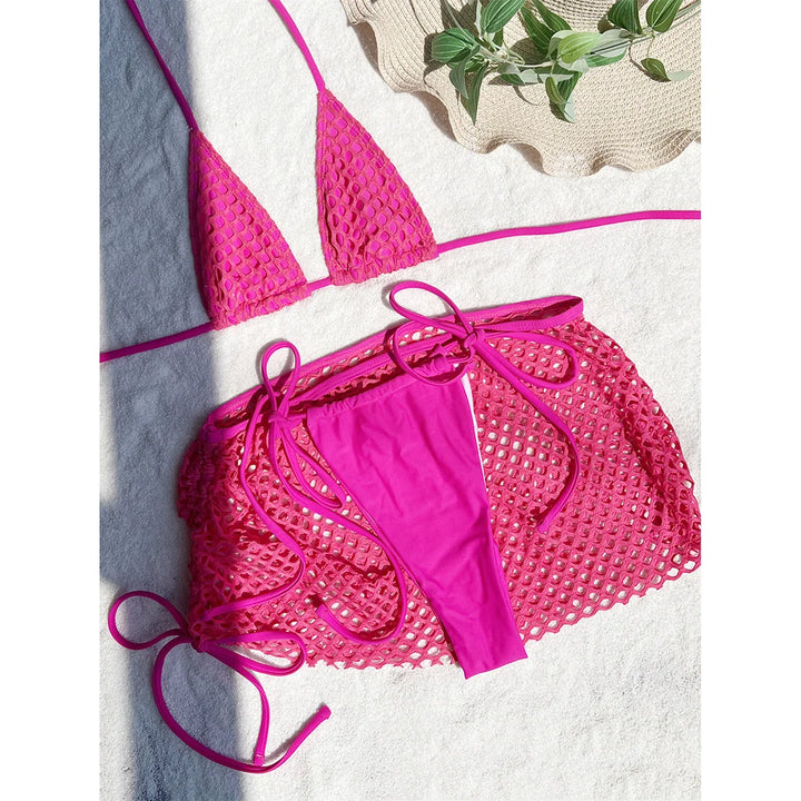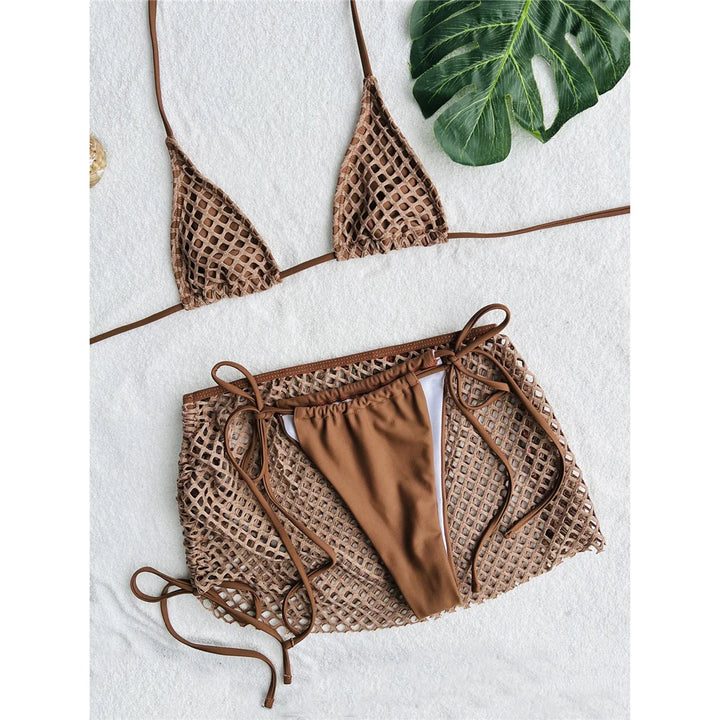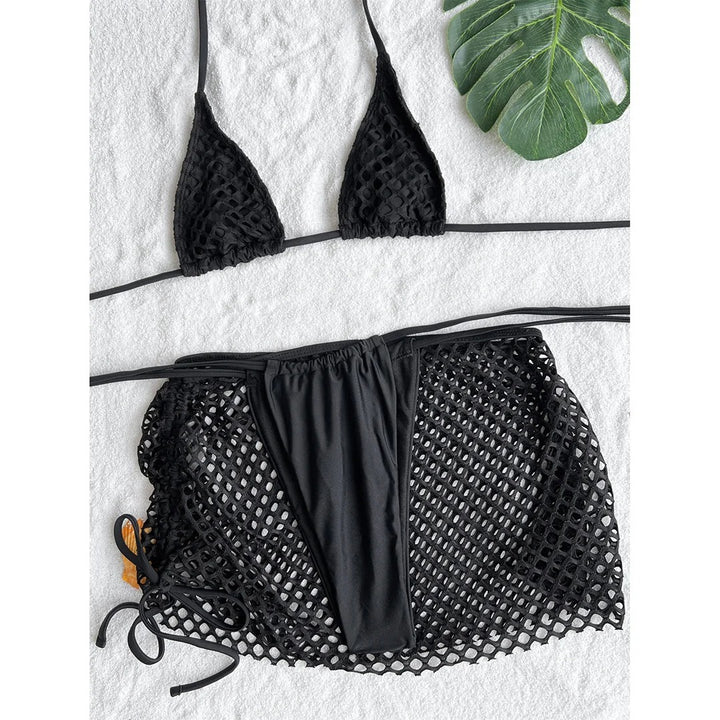 Fishnet Skirt Strappy Bikini Set