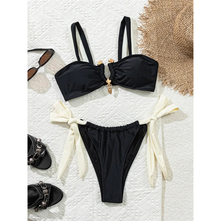 Contrast Metal Ring Strappy Bikini