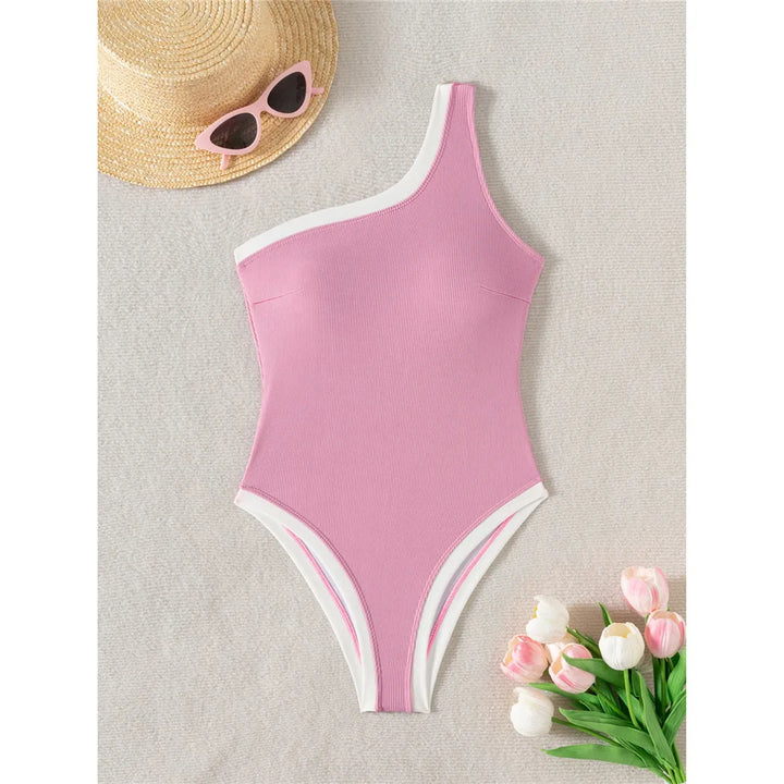 One Shoulder Ribbed Contrast Swimsuit